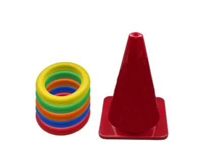 There are multiple ways to play with 4x4 Multi Set. Teach the kids to match colors between Cones and Rings. Challenge their skill to toss more Rings into the Cones. Sort Cones in various patterns to allow kids to practice running or bicycling around the Cones. Practice simple sport and game routines by using this easy to use Cone Set as standard equipments.